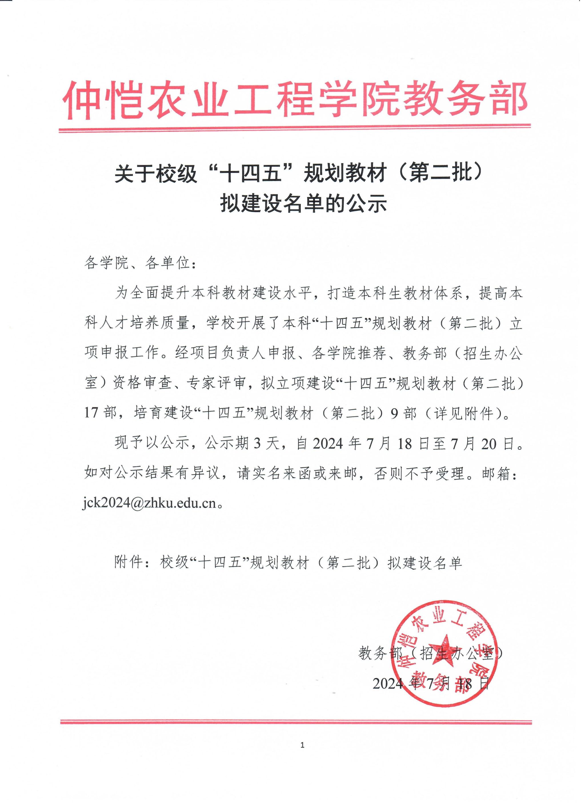 十四五规划教材(第二批)拟建设名单公示
