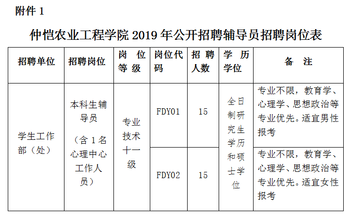 附件: 1.艾弗森贝博ballbet官网 2019年公开招聘辅导员招聘岗位表